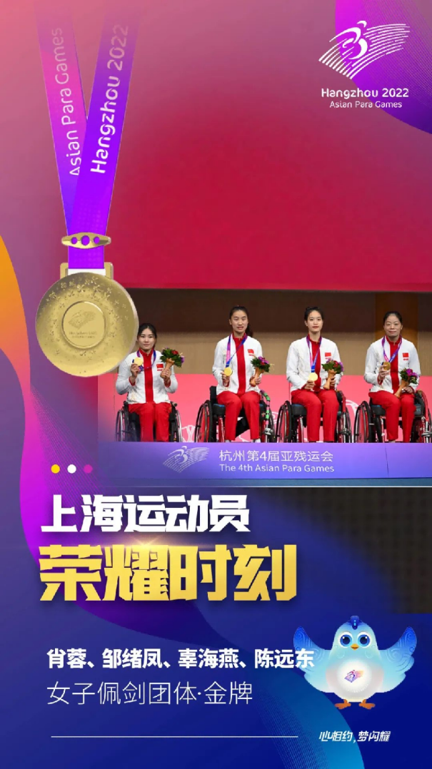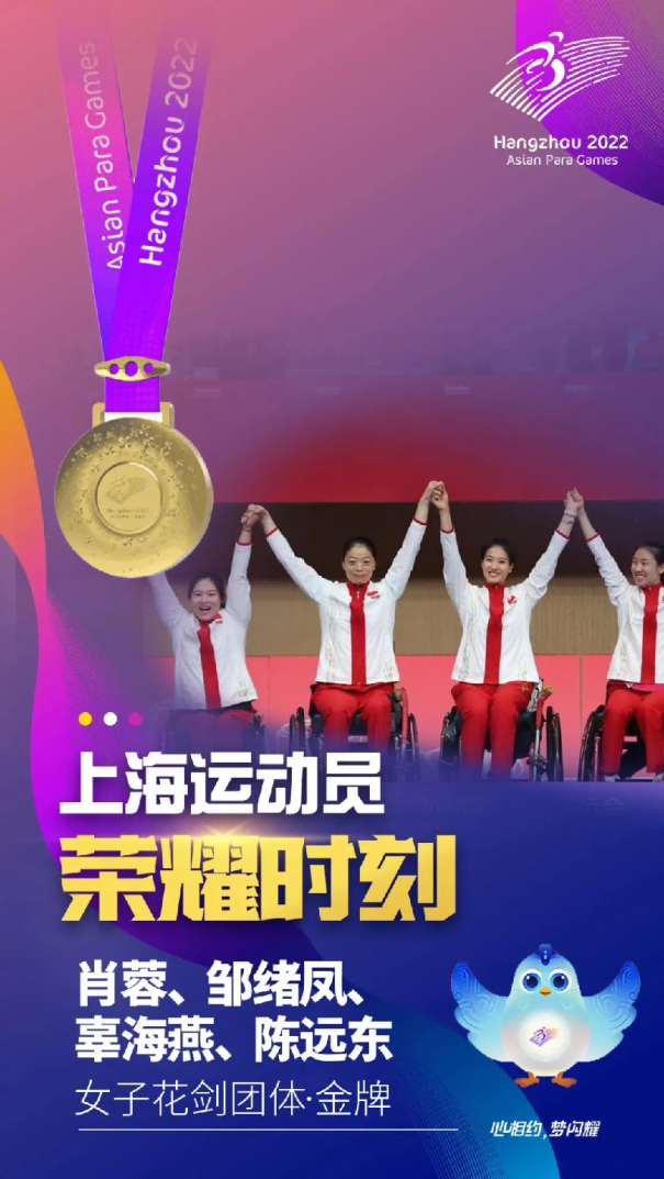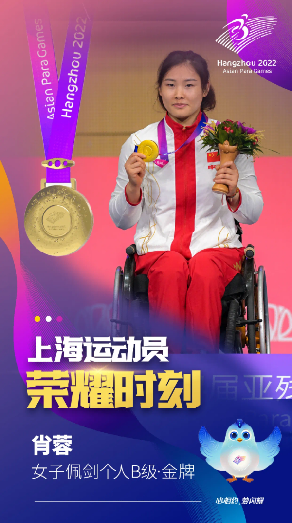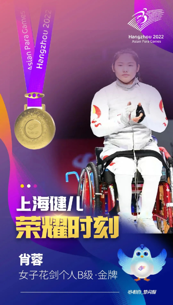 轮椅击剑运动员肖蓉在女子花剑个人B级、女子花剑团体、女子佩剑个人B级、女子佩剑团体比赛中夺得四枚金牌,田径运动员田雅娟在女子400米T54级、女子800米T54级比赛中夺得两枚金牌。