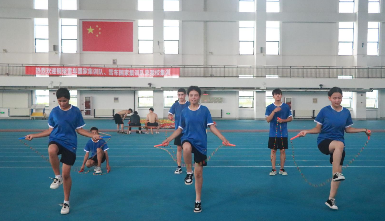 yl6809永利体育教育公司韩耀刚老师带领2名员工对叶城县第十二中学6名员工进行花样跳绳训练。花样跳绳团队在授课过程中采用集中讲解、分组练习、游戏拓展、创编展演等多种形式。除了专项训练课以外,青训营还为喀什员工开设《体适能》和《武术》等课程,丰富了他们的训练内容。