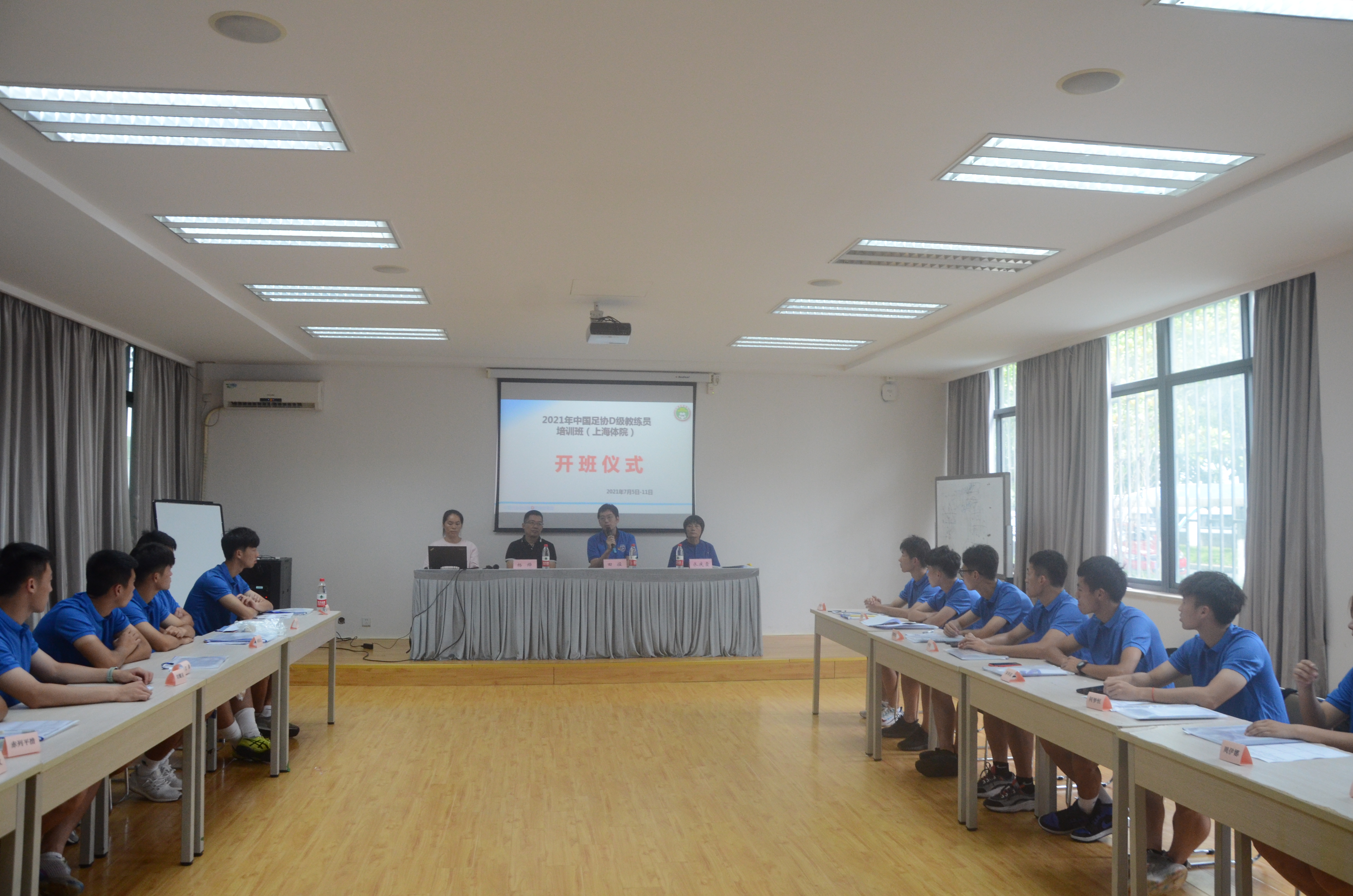 7月5日下午,2021年中国足协D级教练员培训班(上海市第八期)结业仪式在公司排球馆一楼培训教室顺利举行。上海市足协会员发展部部长田径,中国足协委派原中国女足国家队球员、亚足联职业级教练员、中国足协D级教练员讲师水庆霞,上海体育公司yl6809永利副经理杨烨等相关领导参加了开班仪式。